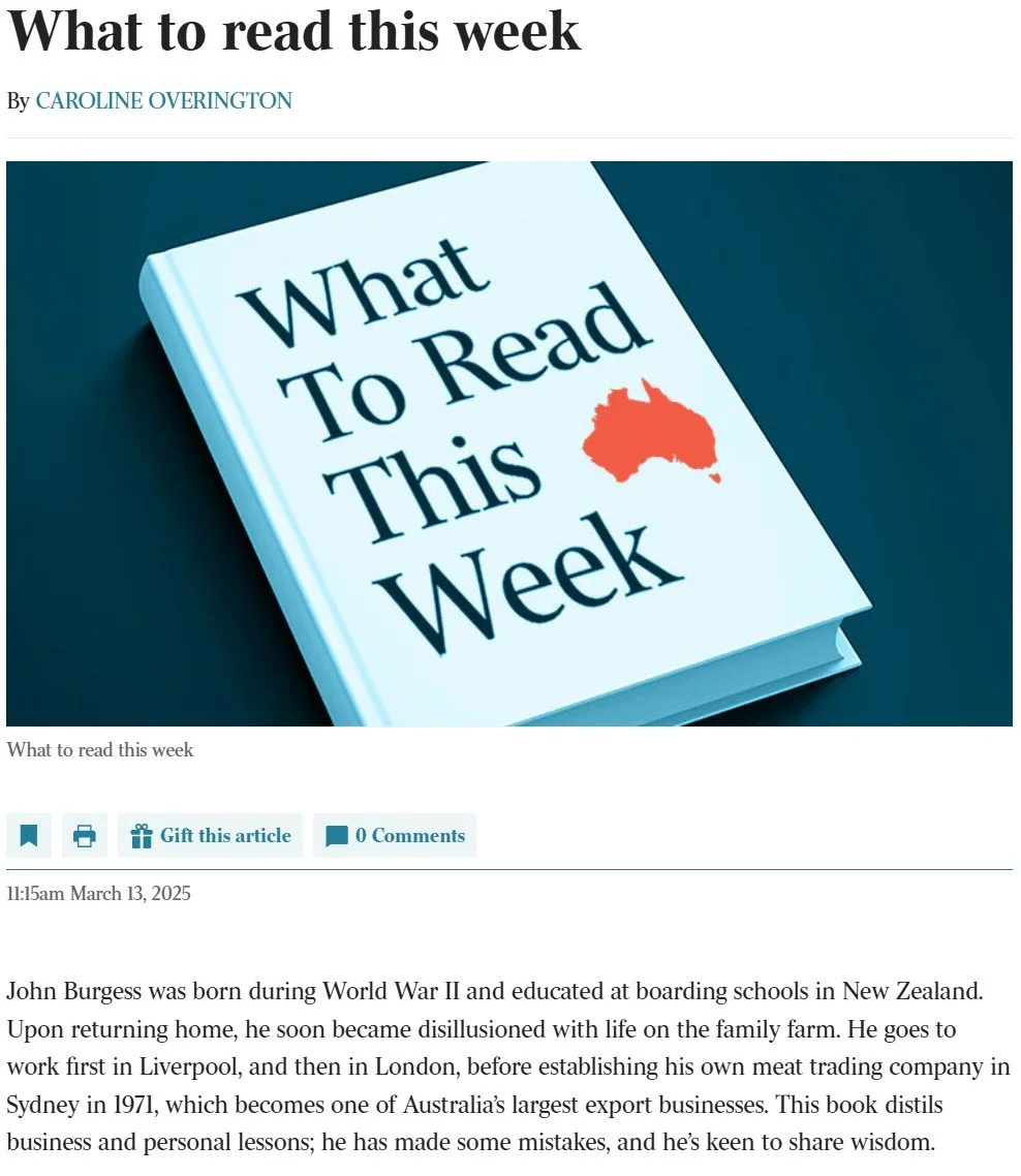 ‘Life, Luck and Lessons Learned’ was listed as recommended reading in The Weekend Australian, March 15/03/2025 by the newspaper’s literary editor, Caroline Overington. The Australian newspaper is one of the most widely circulated news outlets for news and opinion in Australia.